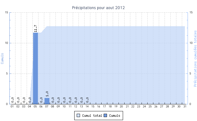 | 12 | 13.7 °C | 29.7 °C | 20.6 °C | 1.3 km/h (11.9 km/h) | SE |